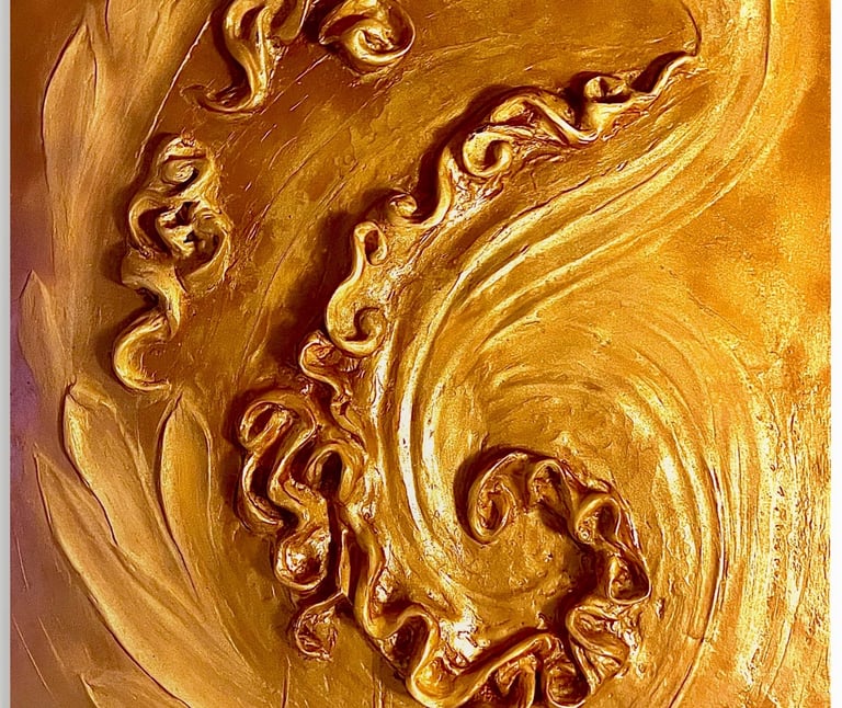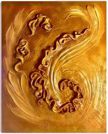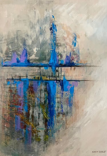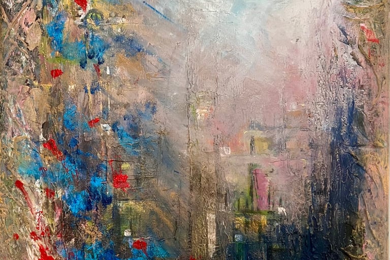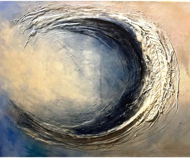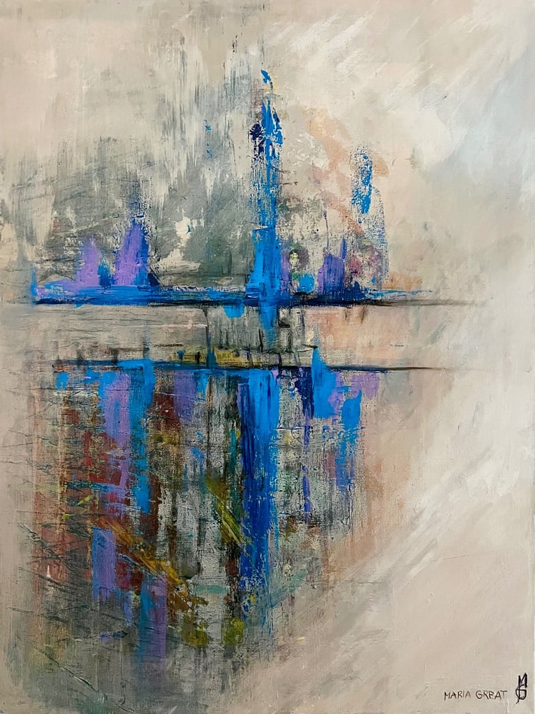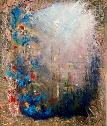 Eläväpintainen ja vahvatekstuurinen teos, jossa valo murtautuu esiin syvistä sinisen ja kullan sävyistä. Future City kuvastaa toivoa, uudistumista ja uuden ajan syntyä