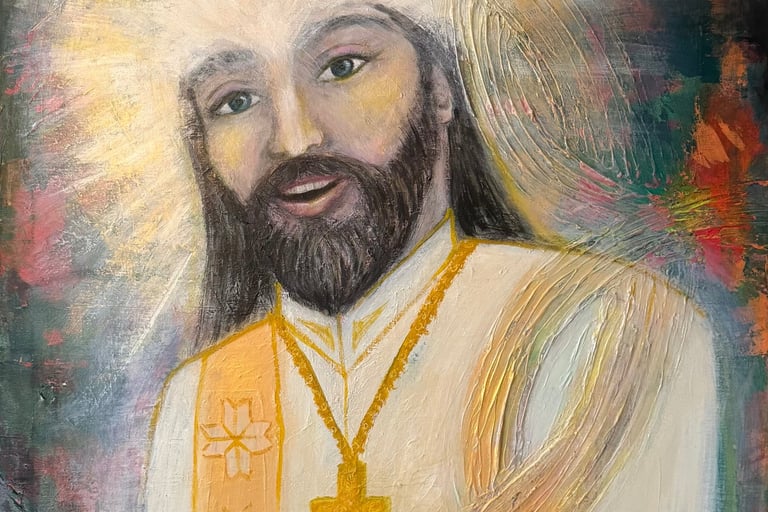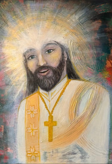 Transfigured Christ Jesus is a spiritual portrait created in a moment of prayerful stillness. The painting depicts Christ in radiance, surrounded by light and sacred presence.